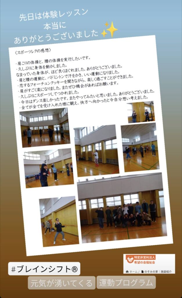 先日、のぞみの家のみなさんと楽しく身体を動かしました。